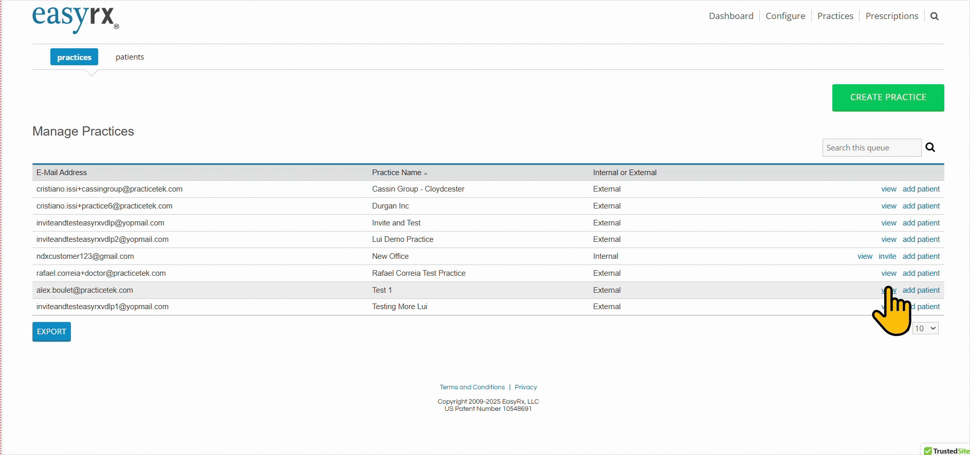 First, browse to the Practice account in your Lab Portal system (if you need the login for this please ask your SME to provide this). lf you click view next to that Practice and then scroll down to the bottom you will be able to enter the BillTrust Account Number and Email address.