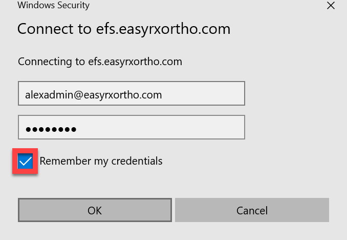 NOTE: If you don't choose "remember my credentials", you will be prompted to enter your user name and password each time EasyFS is opened