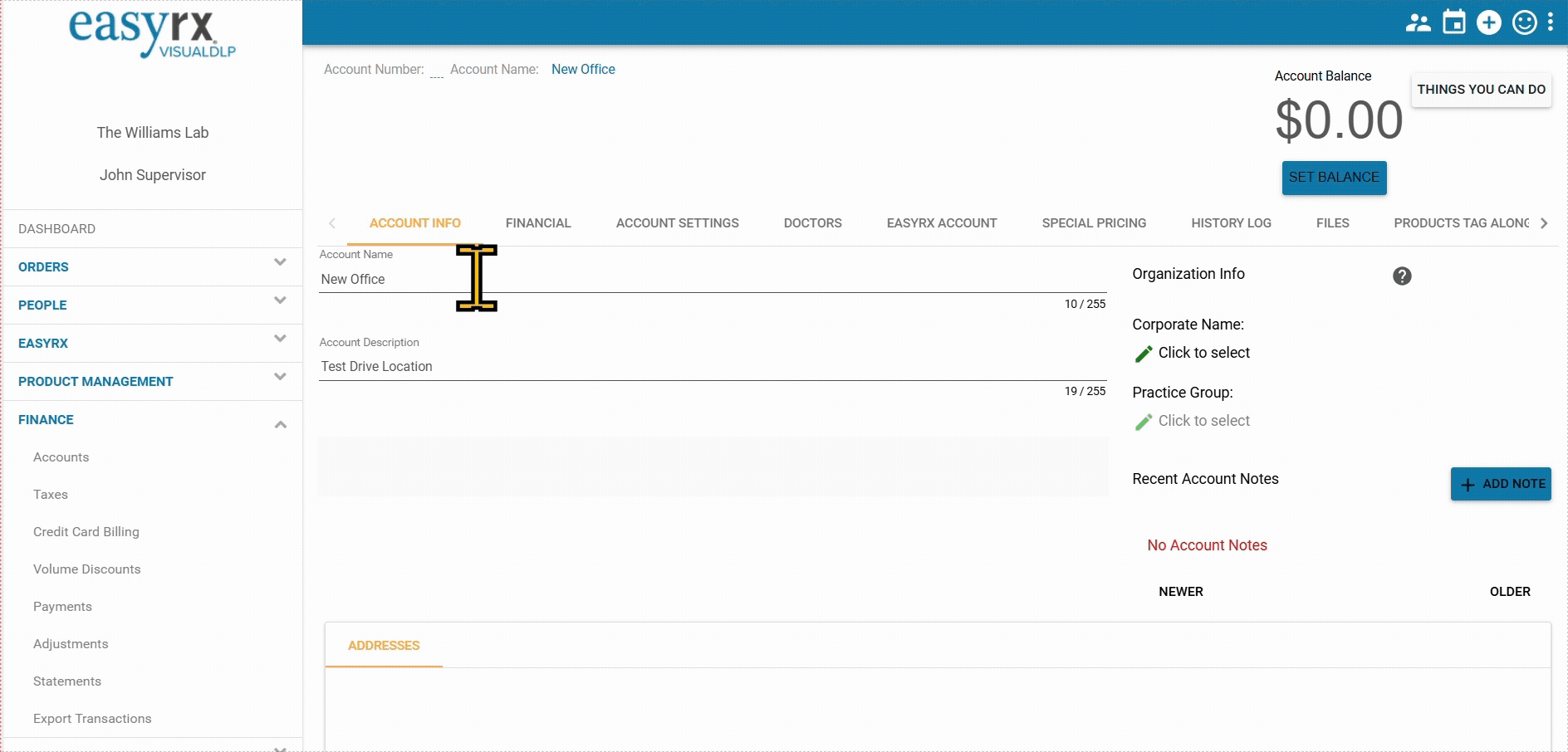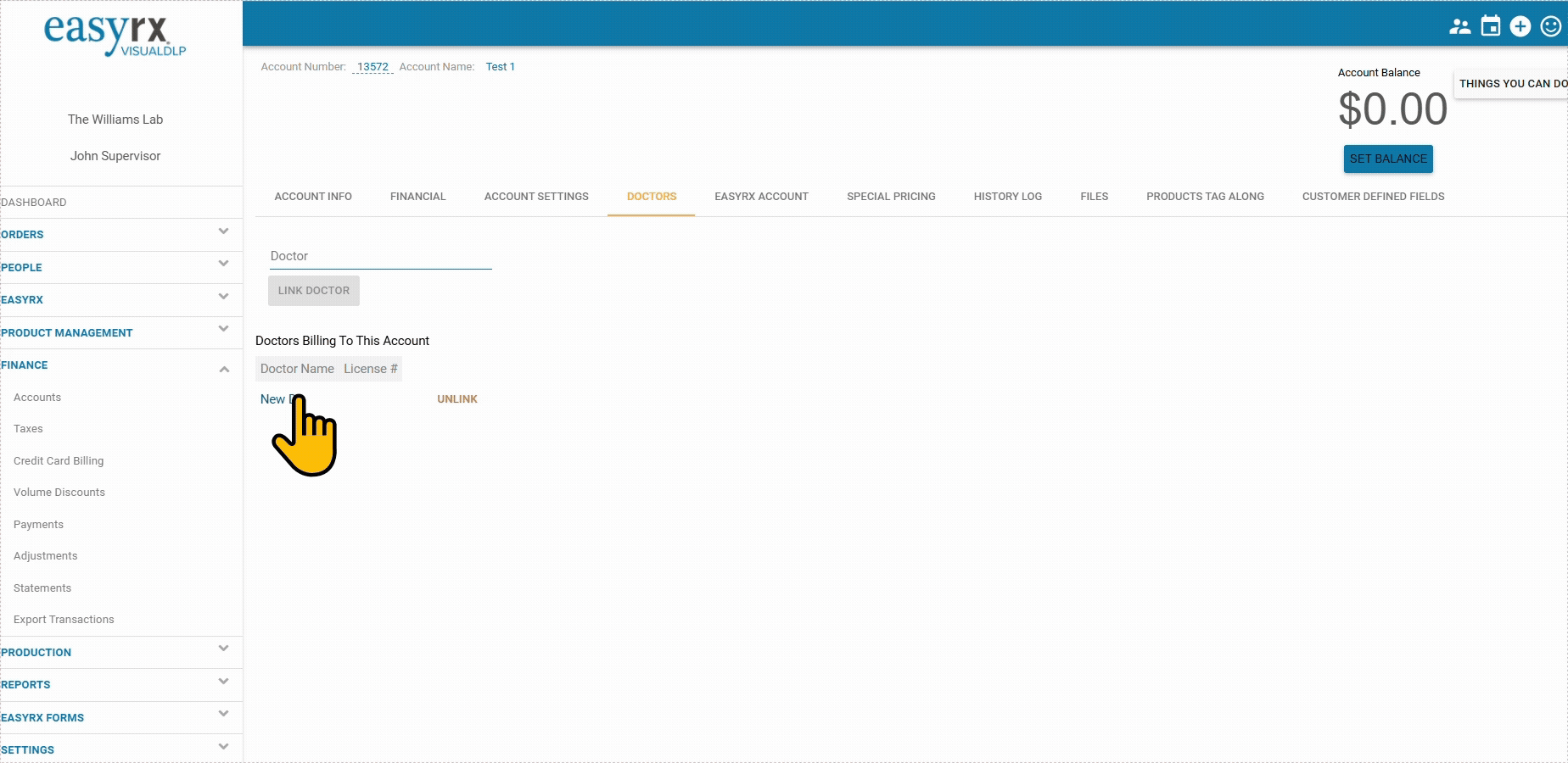 Before starting this article, please read: Introduction To Accounts and Doctors in VisualDLP What you’ll need The name of the Practice or Business Name. Address for deliveries and any phone numbers or email addresses you want to add to the account. ...