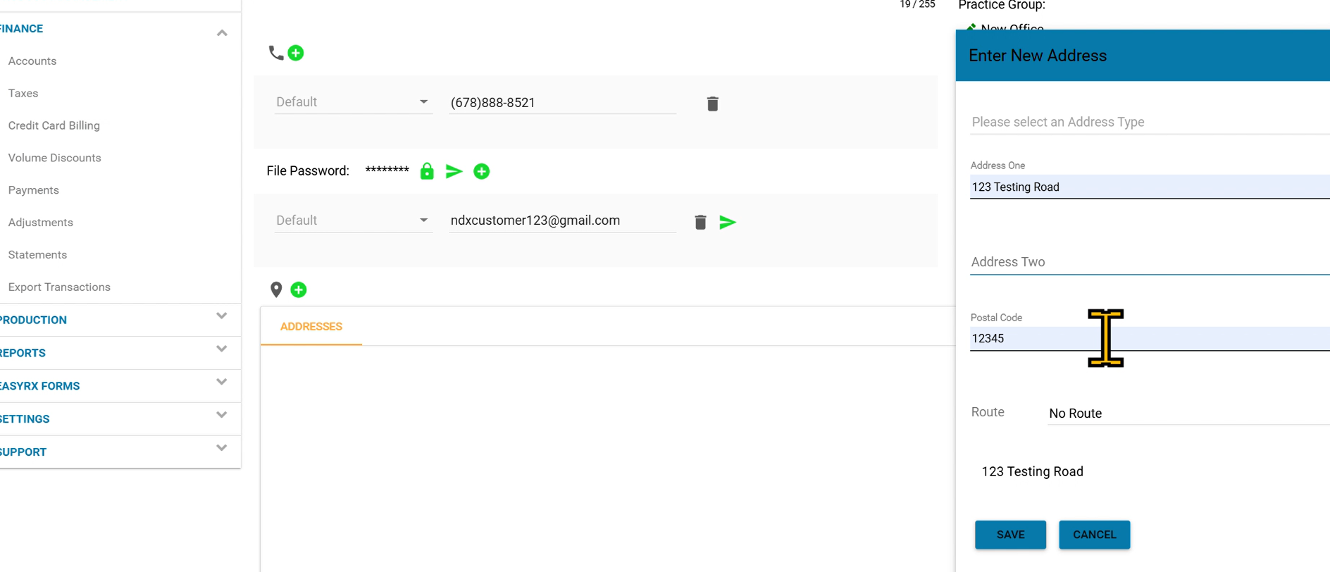 After saving, you will have to enter the email, phone number, and physical address of this new customer