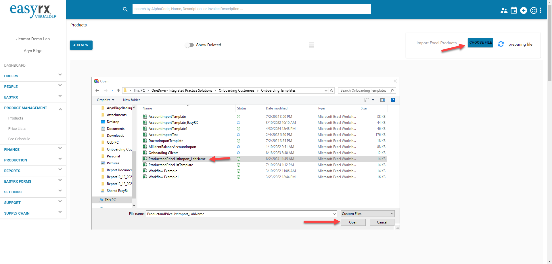- Select IMPORT PRODUCTS. A dialog box will appear confirming the import. Select, Yes, Import them.