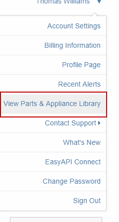 NOTE: The View the complete Parts and Appliance List, open the View Parts & Appliance Library on the Account Menu: