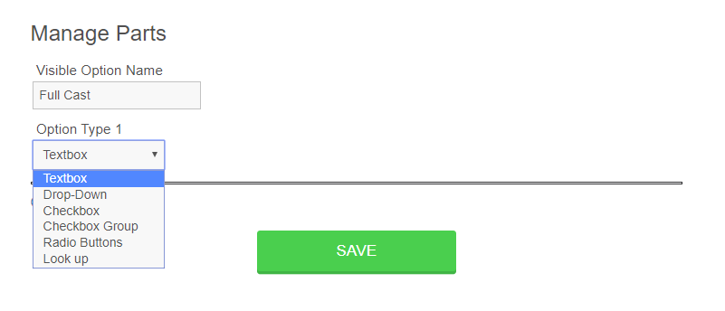 setup Part Option Lookups. Go here to review a lookup on Part Option Lookups |