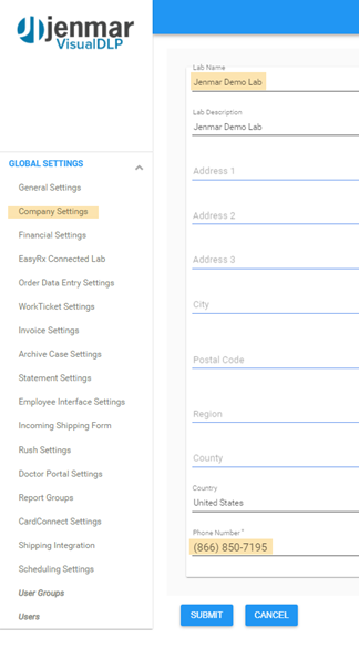 From VisualDLP Launch Pad, access Global Settings -> Company Settings